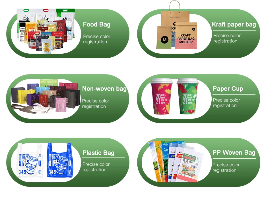 PE, BOPP, PET, CPP, కాగితం మరియు లామినేటెడ్ ఫిల్మ్లతో సహా విభిన్న సౌకర్యవంతమైన ప్యాకేజింగ్ మెటీరియల్లను సమర్థవంతంగా ప్రాసెస్ చేస్తుంది, ఇది ఆహార ప్యాకేజింగ్, షాపింగ్ బ్యాగ్లు, లేబుల్లు మరియు పారిశ్రామిక ప్యాకేజింగ్లకు అనువైనదిగా చేస్తుంది.